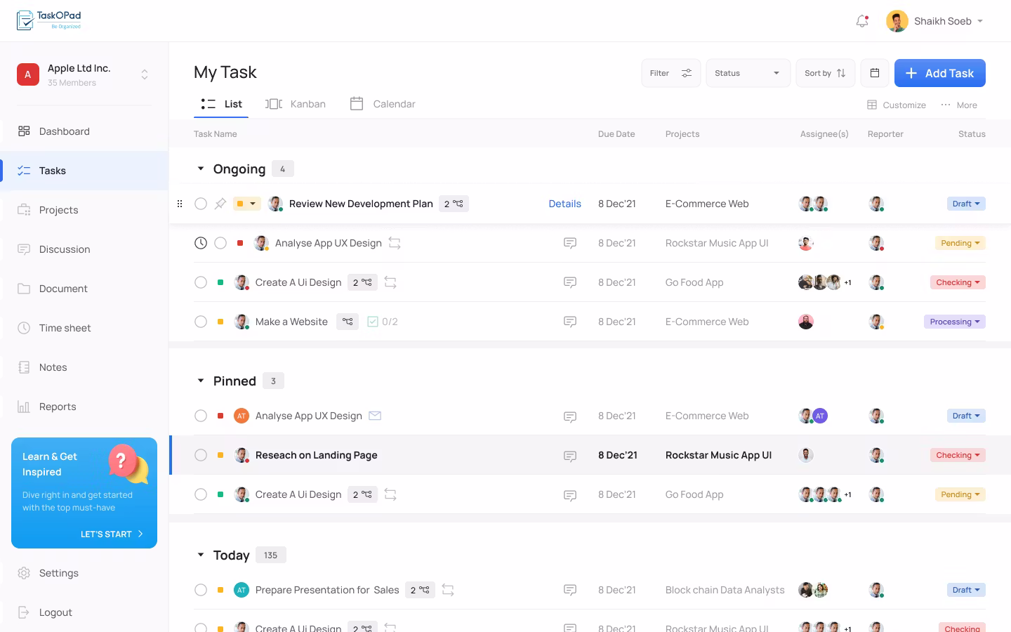 Task Management Software, Project Management, and Workflow Management Software with chat, file management, and many team collaboration features.